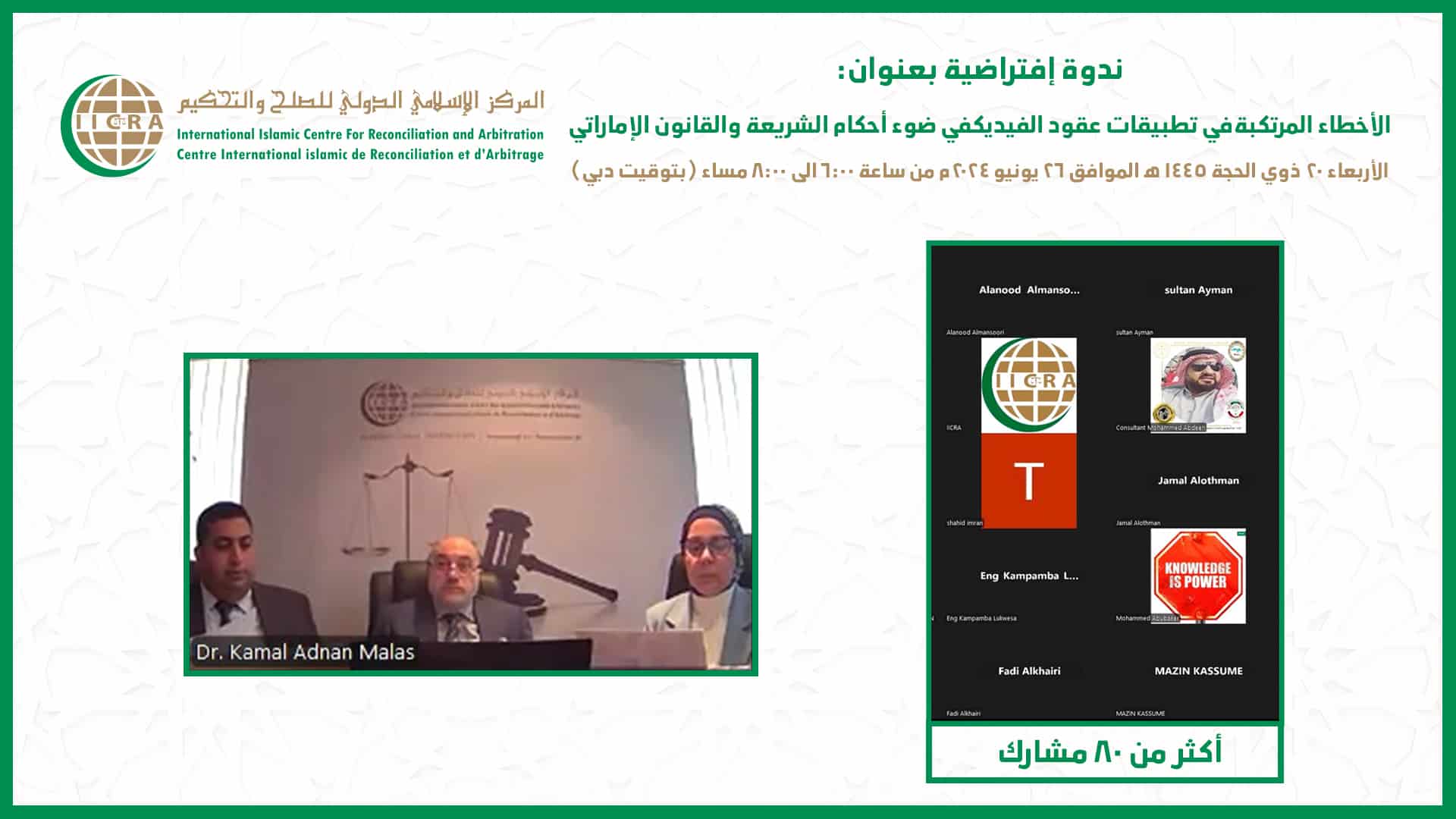 ندوة بعنوان: الأخطاء المرتكبة في تطبيقات عقود الفيديك في ضوء أحكام الشريعة والقانون الإماراتي