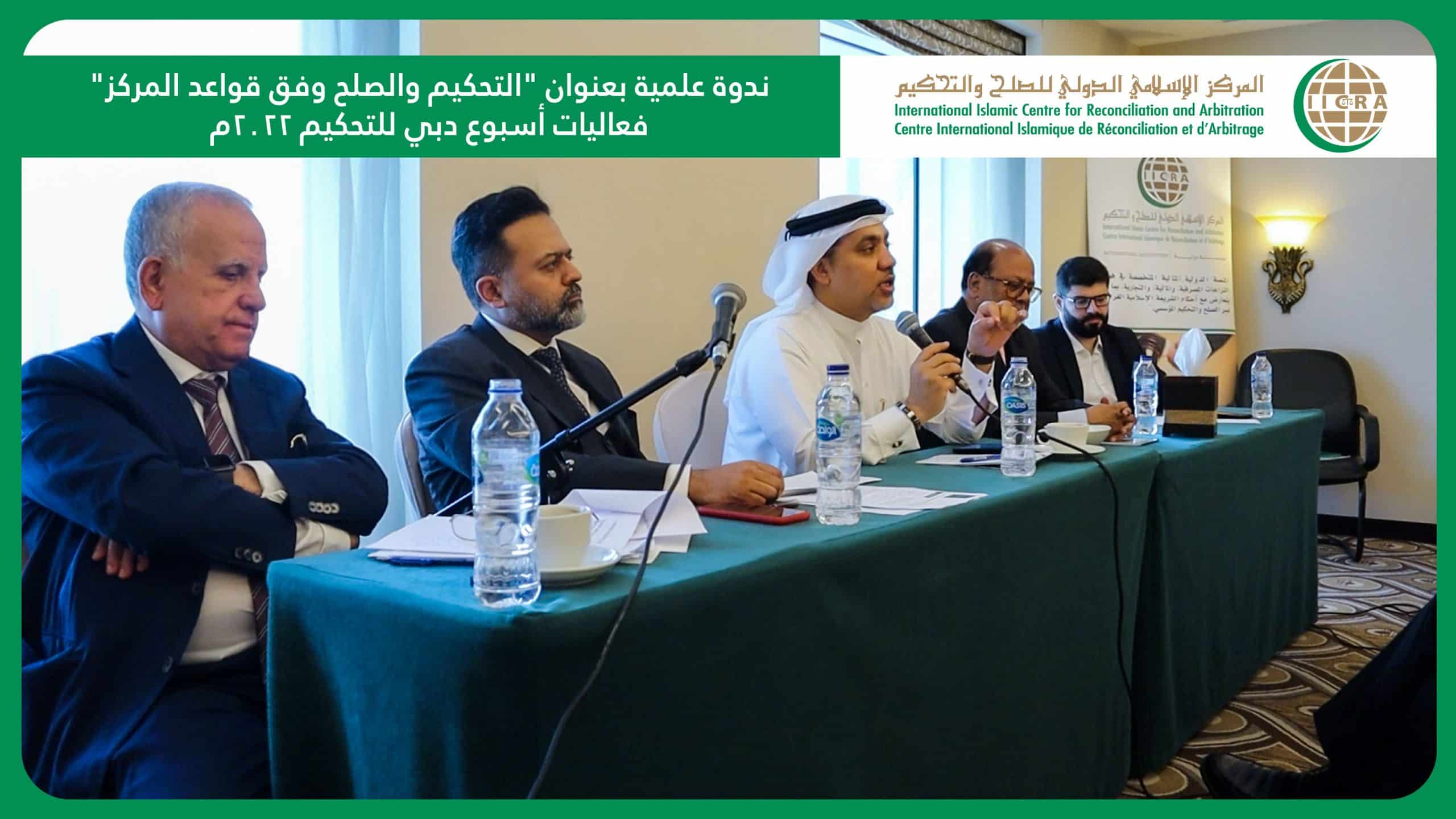 بالشراكة مع معهد التدريب والدراسات القضائية برآسة المدير العام سعادة المستشار الدكتور/ محمد الكمالي، نظم المركز الإسلامي الدولي للصلح والتحكيم برآسة رئيس مجلس الأمناء سعادة البروفيسور/ جاسم علي سالم الشامسي، وبالتعاون مع عدة مكاتب محاماة دولية ندوة علمية بعنوان " عقود المصارف الإسلامية: ضوابط صياغتها وفض نزاعاتها" وذلك يوم الخميس 22/12/2022م، في فندق جزيرة النخلة بدبي.